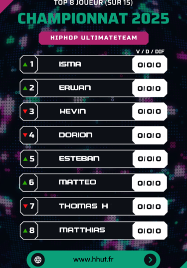 Apres un Championnat incroyable, ou le niveau des joueurs dans l'ensemble n'a jamais été aussi élevé, c'est Isma qui est sacré champion 2024 mais sera t il capable de réaliser le doublé ? Matteo et Thomas H rêve de récupérer leur trone mais des joueurs confirmés tel que Erwan, Dorion, Vincent ou encore Esteban veulent décrocher le 1er titre sur la compétition majeure !