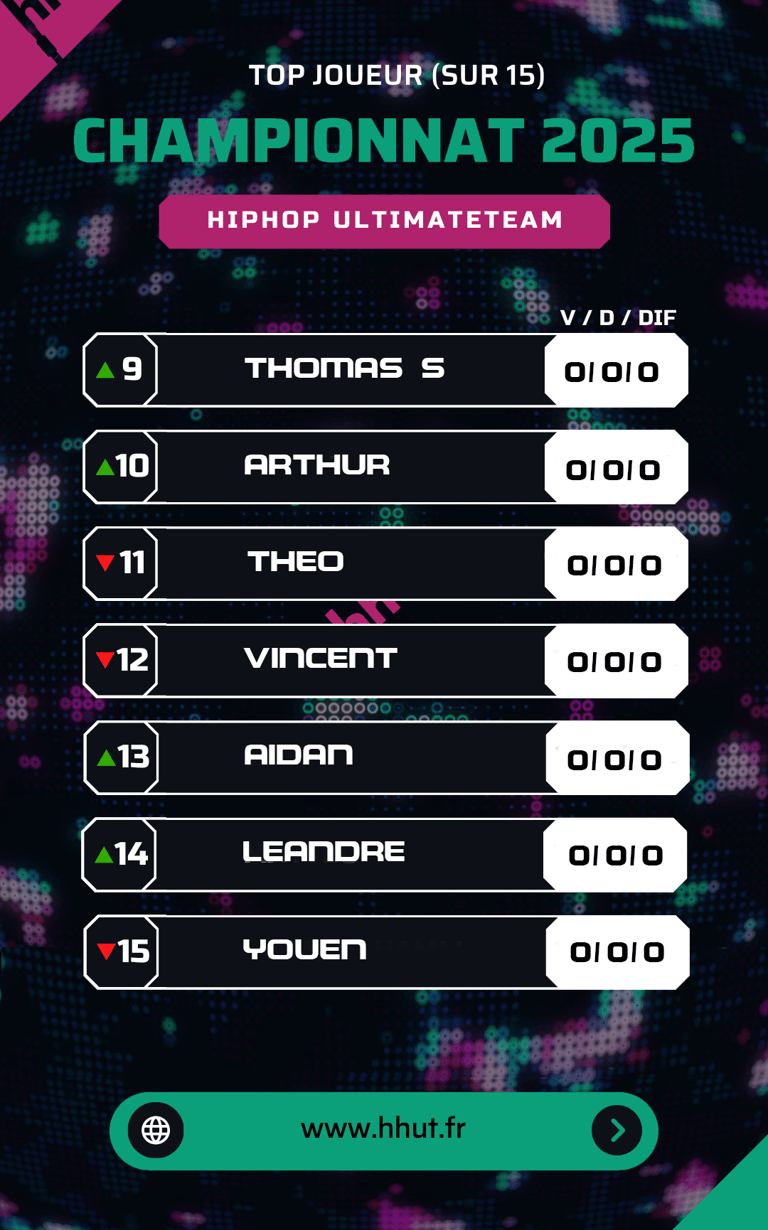 Voici la 4ᵉ édition du championnat HHUT, c'est la compétition majeure de l'année ou s'affrontent les meilleurs joueurs ( du jeu, avec cette année 5 semaines de compétition à travers différents modes de jeu (Basic, Arcade et Premium) il faudra encore montrer une vrai polyvalence sur la durée et être capable de s'adapter rapidement afin de remporter le titre sacré !
